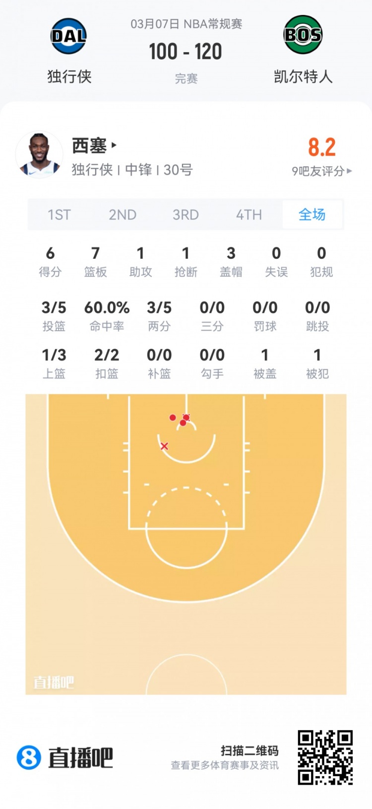 独行侠落选秀穆萨·西塞 登场25.5分钟